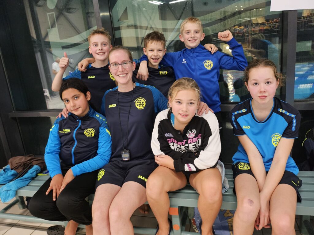 Jesse behaalde in het Swimkick programma op de 50m vrij een 2 e plaats en op de 25m rugslag de 1 e. Willem werd op de 50m vlinder 2 e in het Minioren Circuit en zwom voor het eerst tijdens dit Circuit een 200m vrijeslag, die hij netjes volbracht. Olivia en Gwenn zwommen voor het eerst een 50m en werden respectievelijk 4 e op de 50m vrij en 6 e op de 50m school. De wedstrijd was weer een super fijne belevenis met prachtige persoonlijke prestaties voor alle zwemmers, waar de trainsters enorm trots op zijn. We kijken alweer uit naar de volgende wedstrijd.